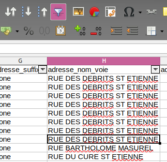 @Loran750@Etalab@Cometik#LibreOffice#Calc détecte bien les séparateurs, j'approuve le choix, et j'ouvre le fichier puis le passe hors "lecture seule" pour les opérations de tri.