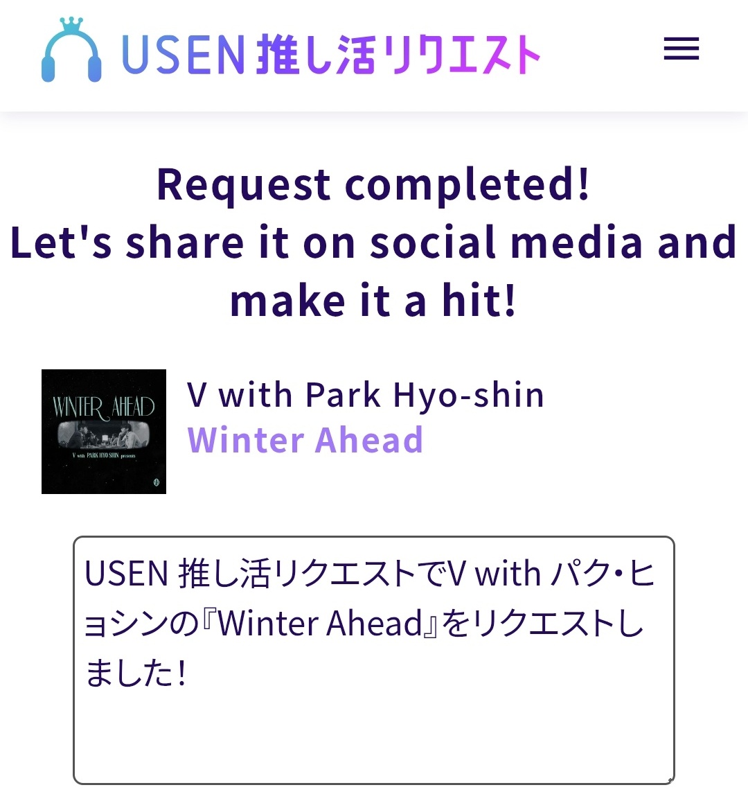 USEN REQUESTING for WINTER AHEAD & FRIENDS.