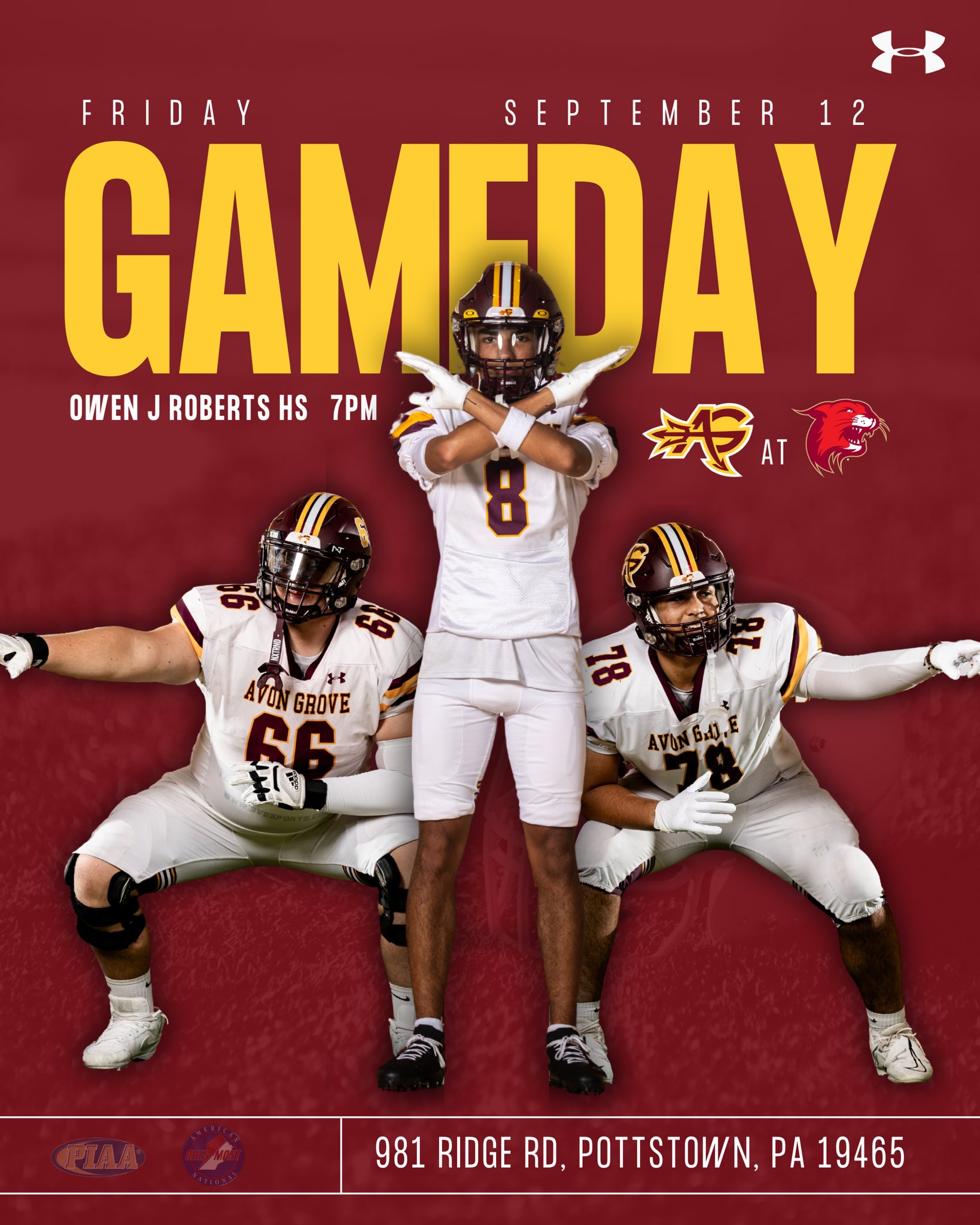 🏟️: Wildcat Stadium, 981 Ridge Rd. Pottstown, PA 19465
