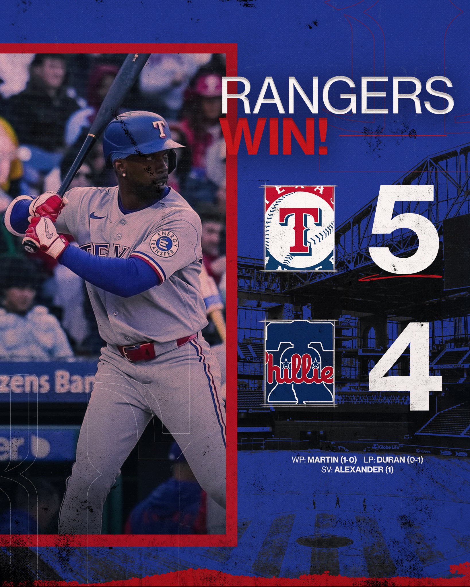 RANGERS WIN! Jacob Latz pitched 4 hitless innings with 3Ks and Andrew McCutchen comes up big in extras with a extra run as the Rangers even the series vs the Phillies and go for the series win tomorrow as Gore makes his Rangers debut.