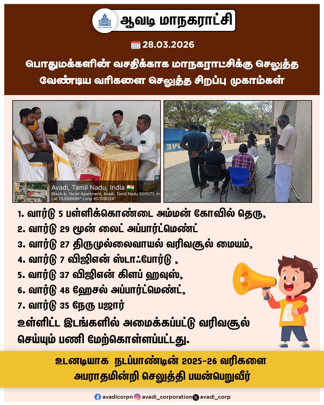 #Special #Camp #Property #Tax #PayOnline #QRcode #Collection #Counter #PropertyTax #Tax #Tiruvallur @MawsTamilnadu @TNDIPRNEWS #NammaAvadi #Avadi #AvadiCorp #ஆவடி #மாநகராட்சி