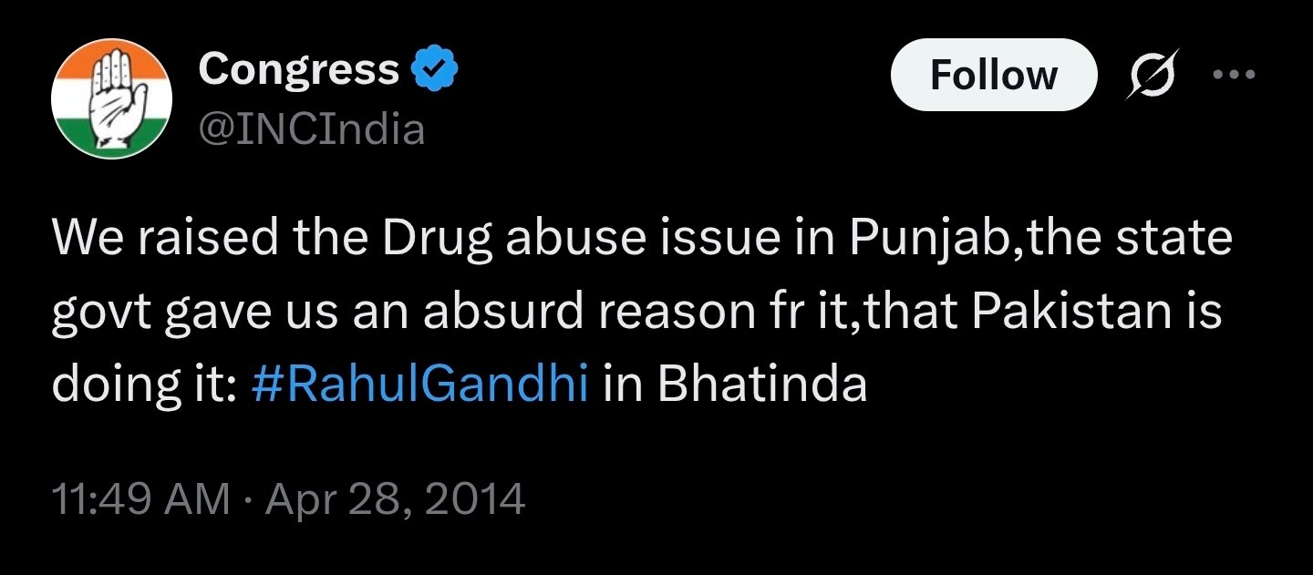 We raised the Drug abuse issue in Punjab,the state govt gave us an absurd reason fr it,that Pakistan is doing it: #RahulGandhi in Bhatinda