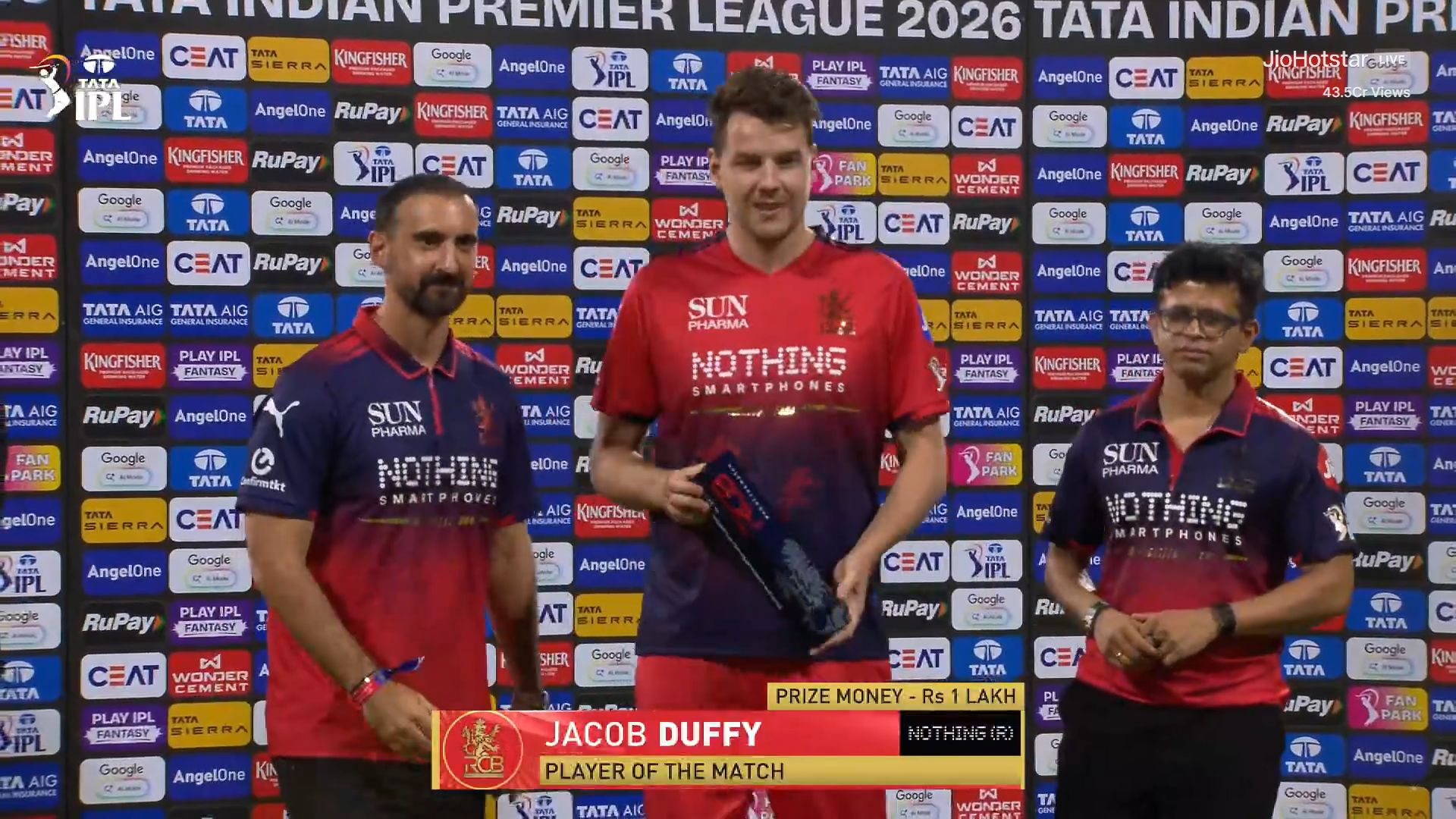 RCB: 203/4 (15.4 overs)Jacob Duffy shines with early breakthroughs (Player of the Match). Virat Kohli anchors with an unbeaten 69* , Devdutt Padikkal 61(26) as RCB chase 202 with 26 balls to spare #RcbvsSrh #RCBvSRH #IPL2026