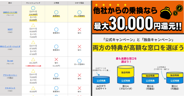 auひかりのキャンペーン窓口を10社以上調査した件。