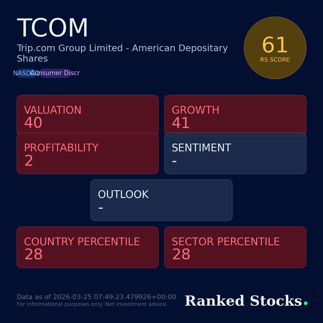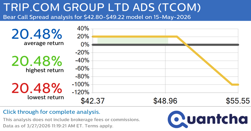 Quantchabot has detected a new Bear Call Spread trade opportunity for TRIP.COM GROUP LTD ADS (TCOM) for the 15-May-2026 expiration period. You can analyze the opportunity in depth over at the Quant…