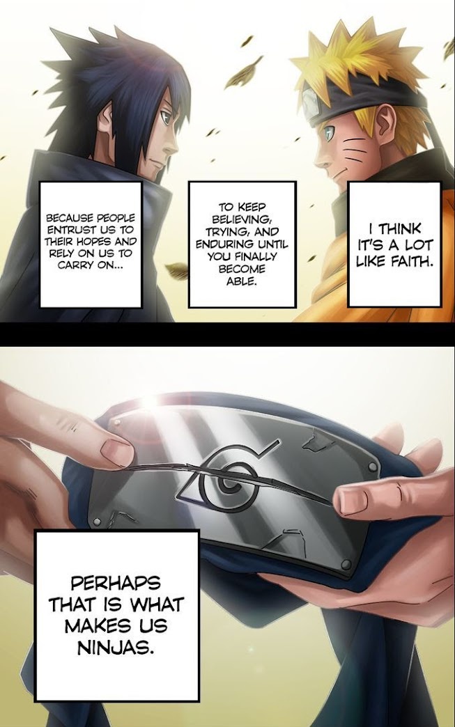 Dari salam perpisahan sasunaru, langsung pindah scene beberapa tahun kemudian. Waktu topi hokage dibuka dan nunjukin naruto, kasih tuh backsound heroic naruto