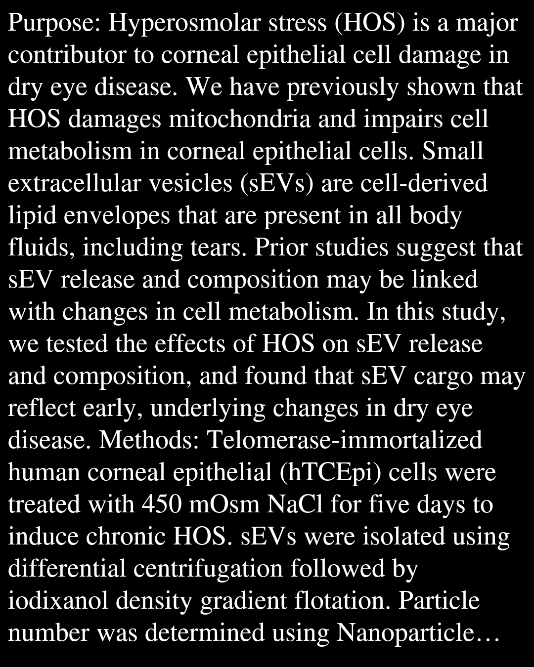 Hyperosmolar stress promotes the release of small extracellular vesicles containing metabolic proteins from corneal epithelial cells