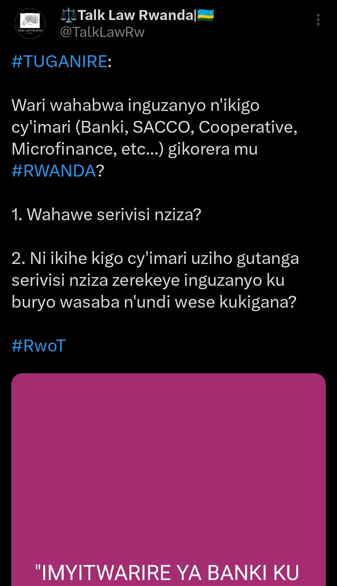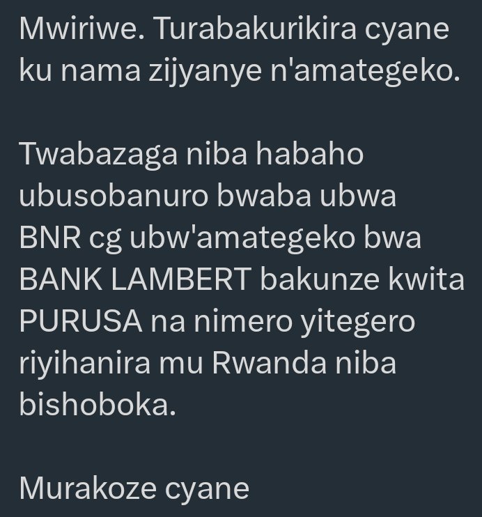 @CentralBankRw ikwiriye gutunga itoroshi muri serivisi z'inguzanyo zitangwa na #Banki hanze aha.