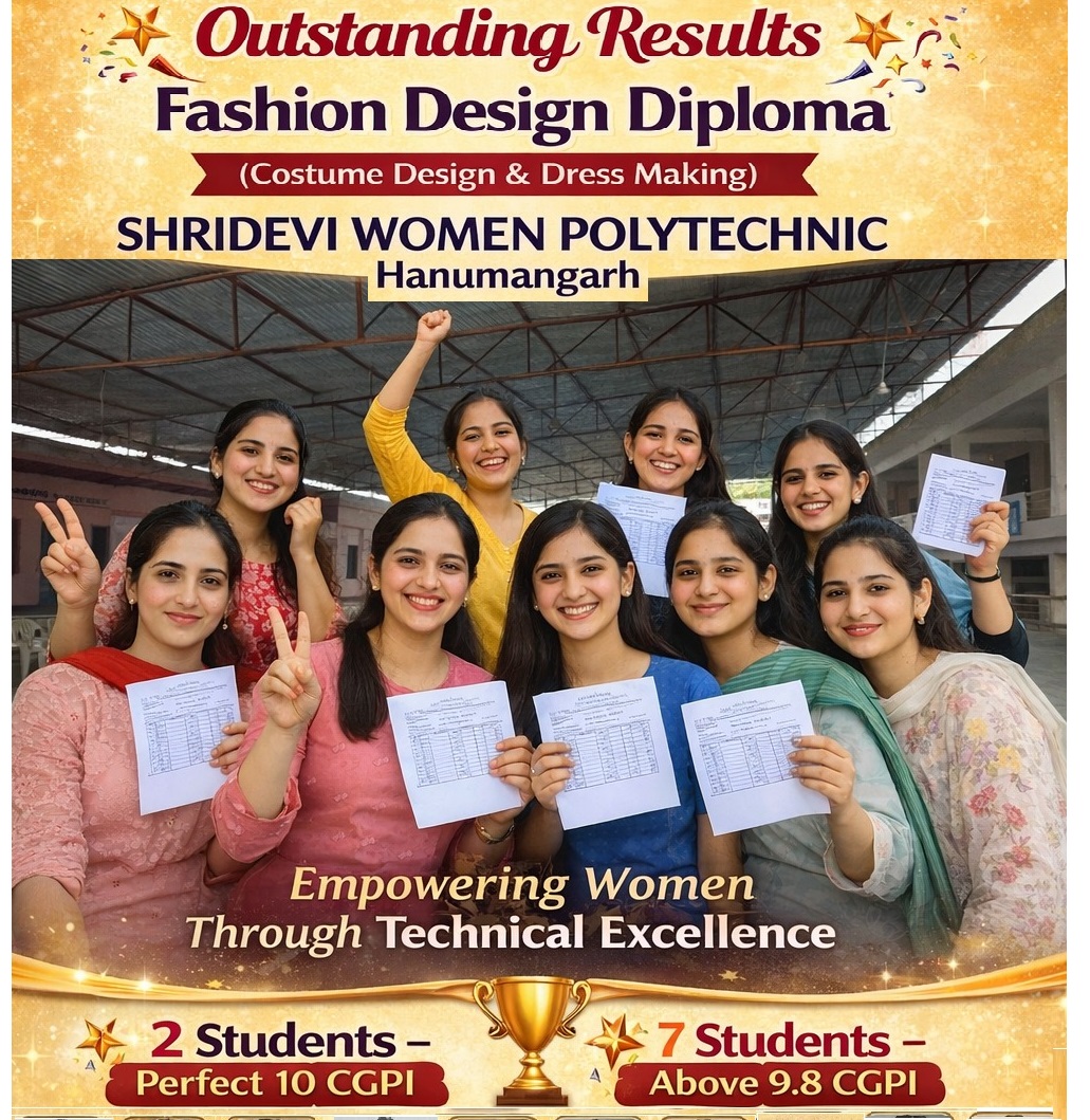 Students of Shridevi Women Polytechnic, Hanumangarh achieved outstanding results in BTER exams.