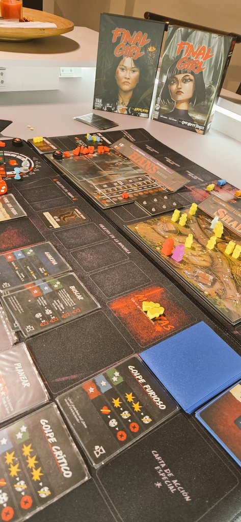Hoy la pobre Vicky ha quedado varada en los maizales de #ShadyAcres y se ha tenido que enfrentar a niños malvados, posesiones y #Hans, el asesino cerdito en #FinalGirl. Rejugabilidad y temática en este juego en solitario hermosamente sobreproducido de @VanRyderGames .
