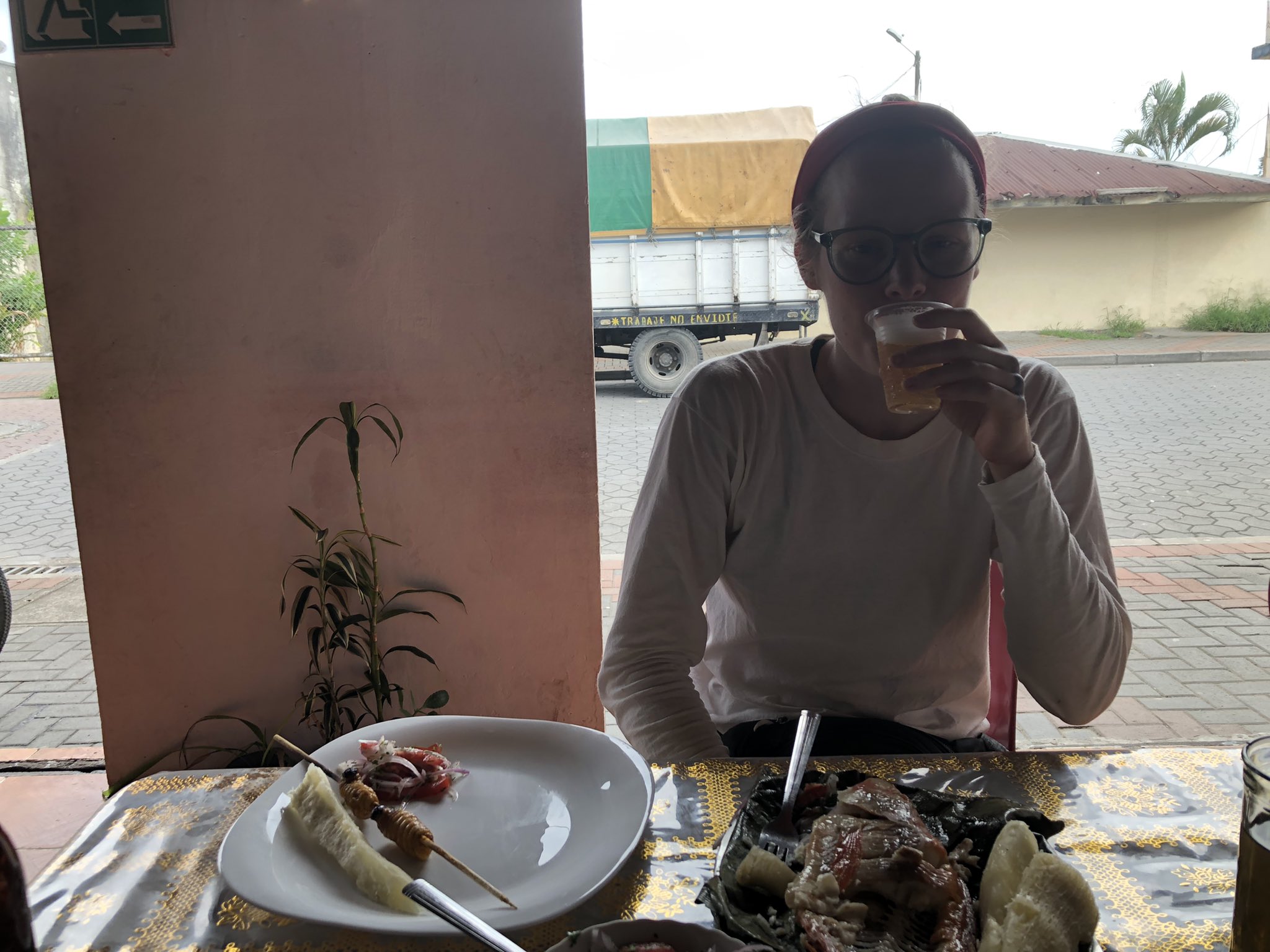 We are ending our #fieldwork for @mollitaruth PhD. After eating ants, fishing her meal & swimming in the #Tiputini, she had a last test 4 being a #Mauritia lover: eating Rhyncophorus’s larvae, the beetle that grows on the palm known in #Ecuador as #chontacuro. Fancy @PalaeoNick?