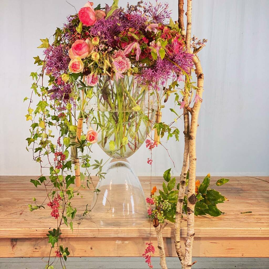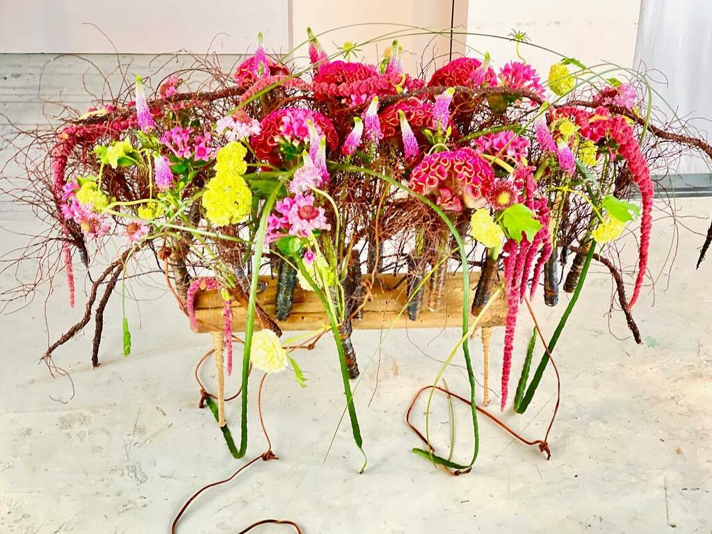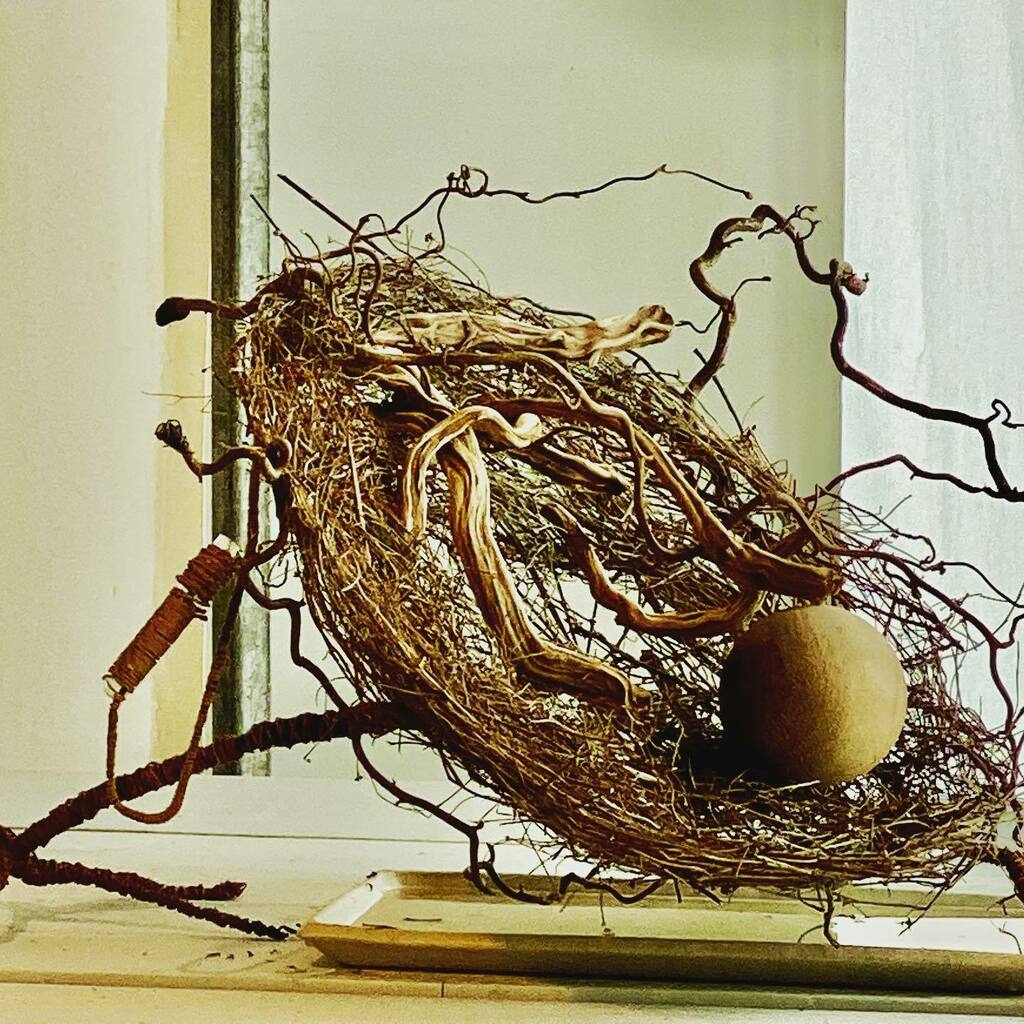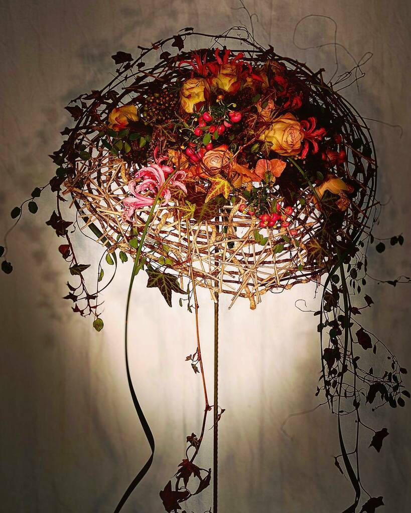 Organic Work in a big Glasscup . #structur now invisible , just out of Hazelnutsticks , bound with an organic Medium . But very stabil . Flowers pure in Water. Done for EIAF.... the Latin American School , in an 2 Hour Demonstration , to see from New Yo… instagr.am/p/CBSv0yMo3FB/
