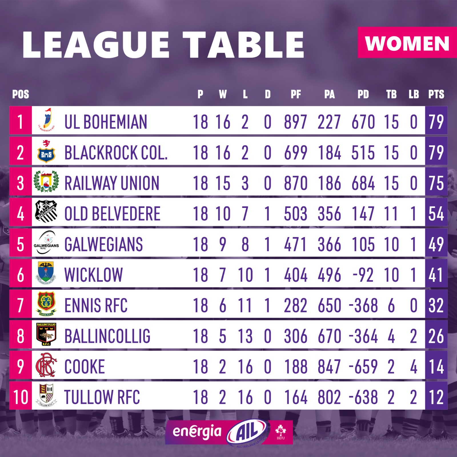 Here's how it looks at the end of the Women's #EnergiaAIL regular season.