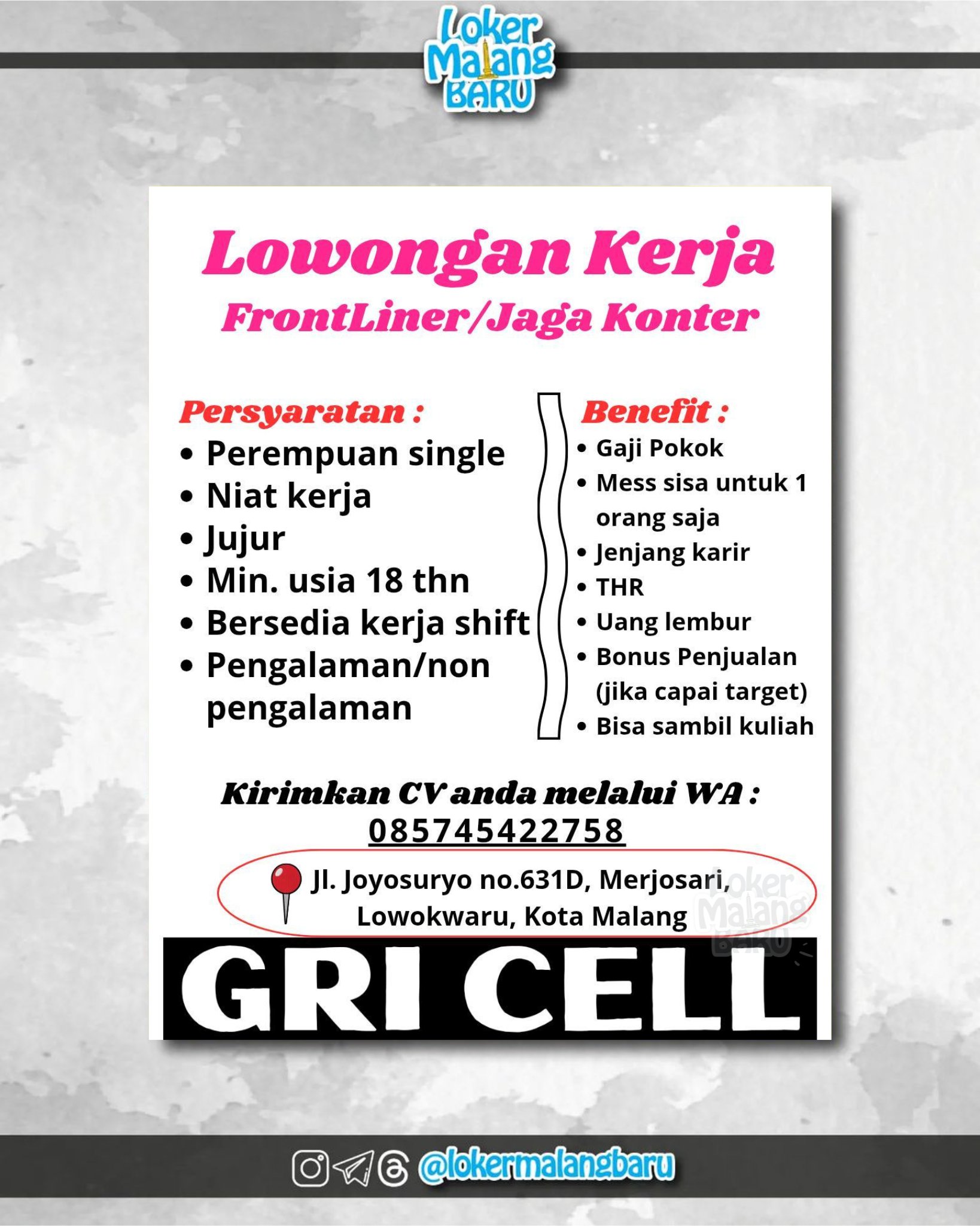 Kirimkan CV anda melalui WA: 085745422758