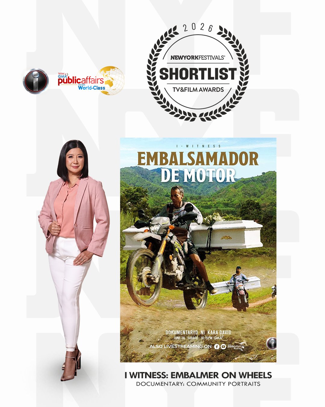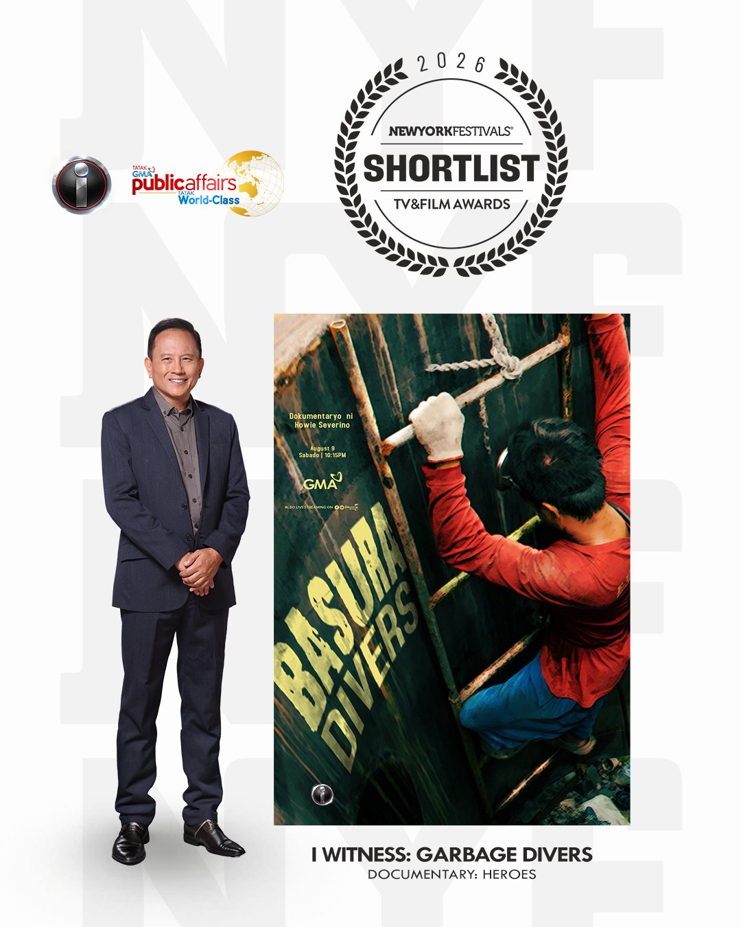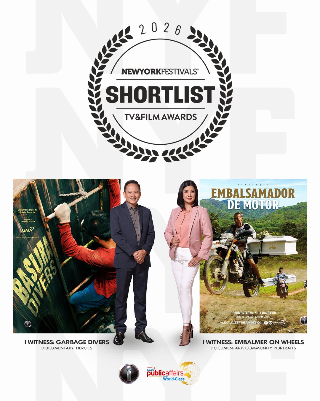 Napabilang sa shortlist ng New York Festivals TV & Film Awards 2026 ang “Basura Divers” ni Howie Severino at “Embalsamador de Motor” ni Kara David mula sa I-Witness.