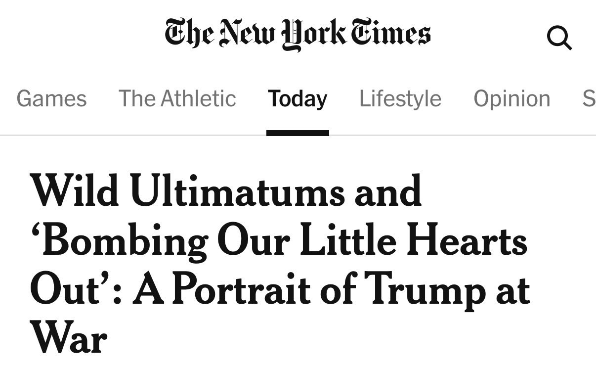 👉”Mr. Trump’s wild swings — from optimism to frustration and anger, from de-escalation to escalation — have combined to give his management of the war an erratic, make-it-up-as-it goes feel.”