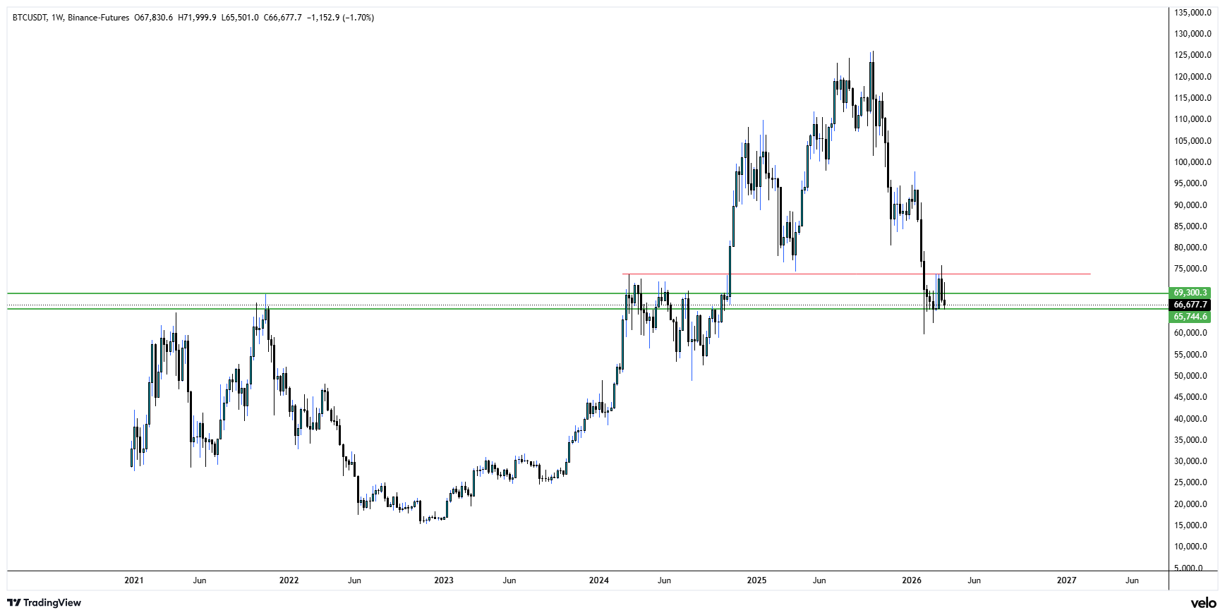- green lines = HTF SR -- 2021 / 2022 ATH + highest W1 candle closure