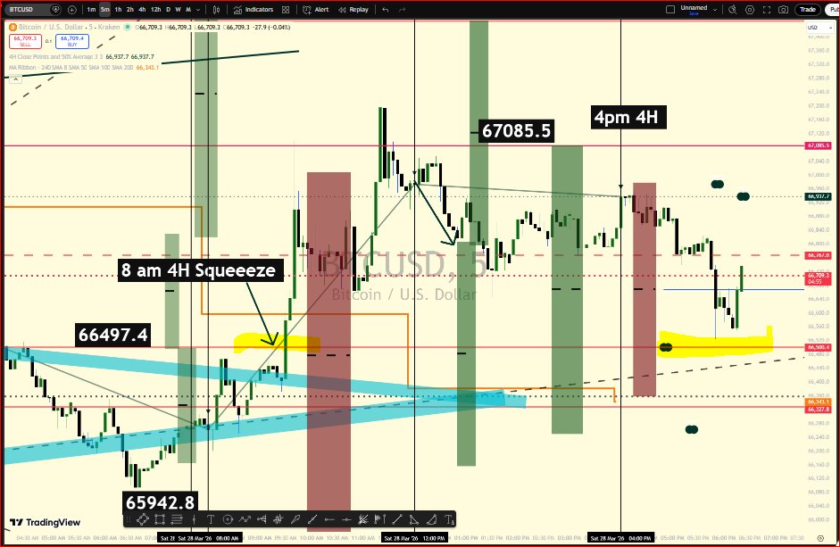 #BTC 8am 4H Squeeze Breakout Level backtest still in play . Notice how sporadic price has been since its violation ...