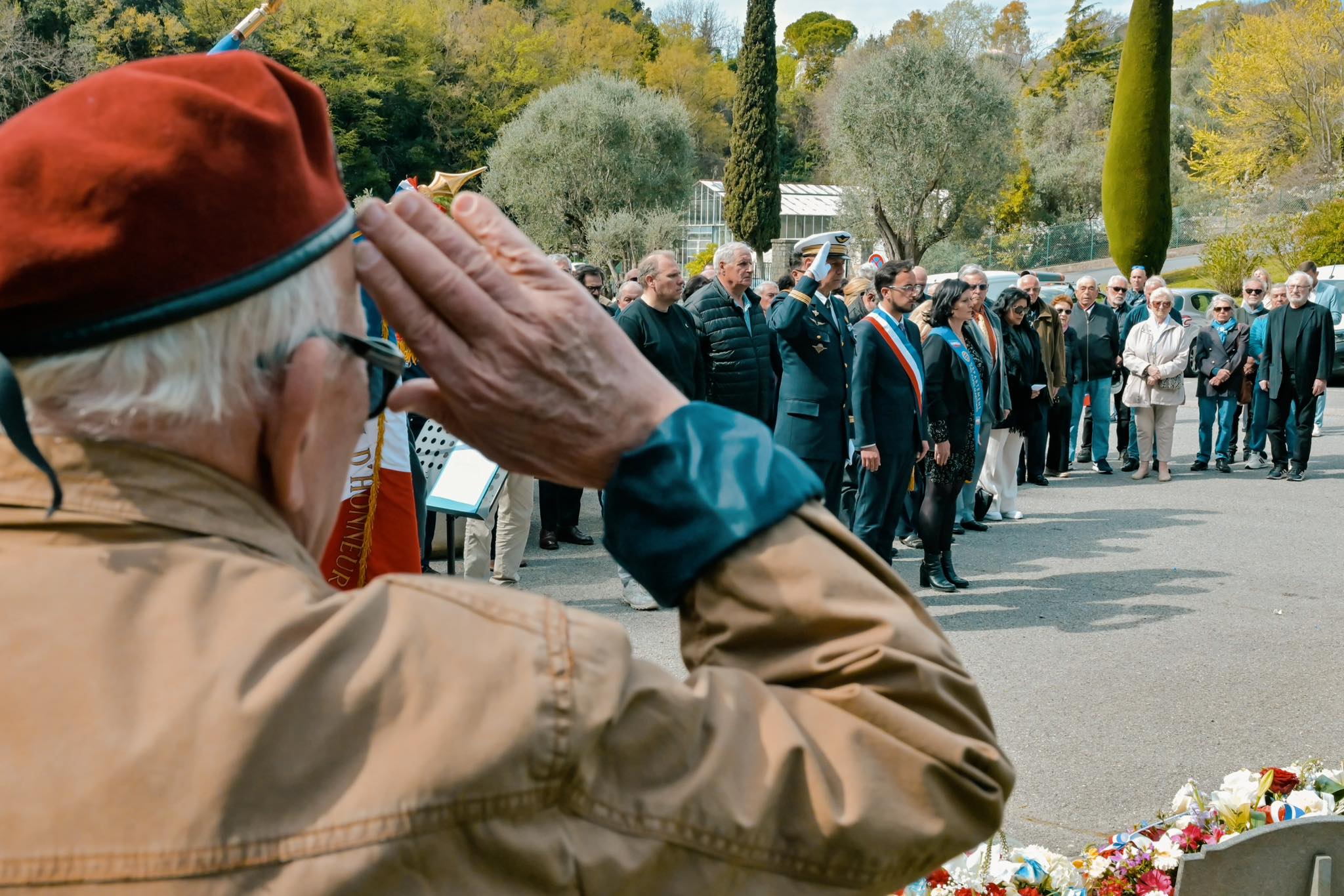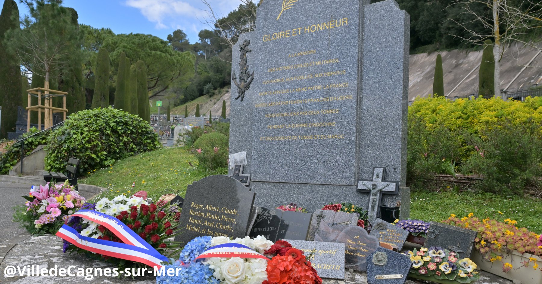 Ce 26 mars, @MassonBryan, maire de Cagnes-sur-Mer, et les représentants civils/militaires ont commémoré le 64e anniversaire de la fusillade de la rue d’Isly (1962), au cimetière de la Buffe.
