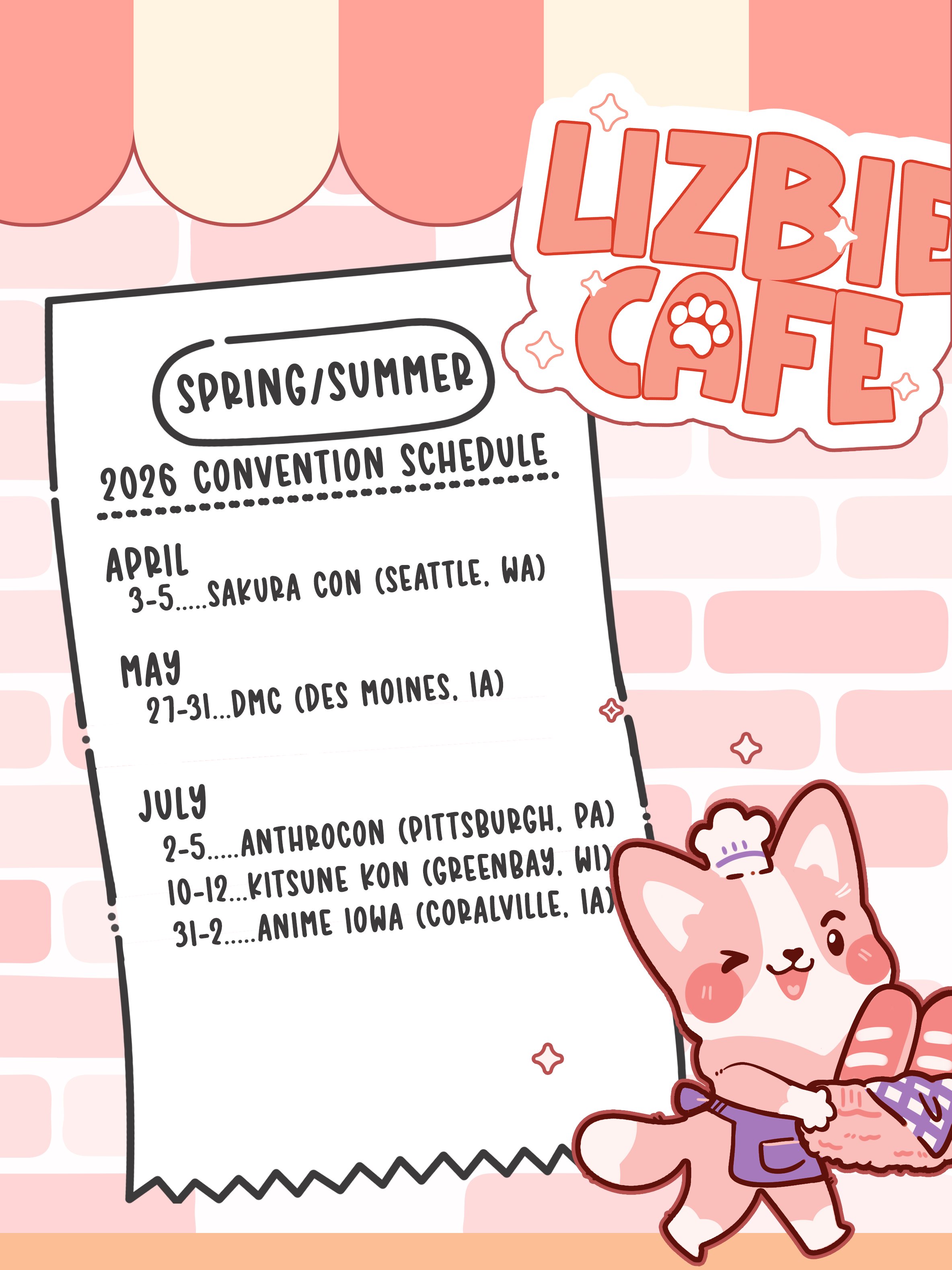 Lizbie Cafe's con schedule~ these are all the upcoming cons I will be at the next few months!