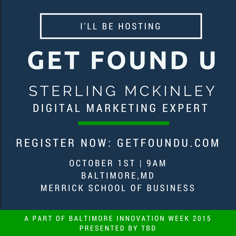 Whitebrow Marketing @whitebrowmktg · Sep 9, 2015 RT SterlingMcKinle Host and digital marketing expert. Tickets at getfoundu.com binnovationweek #Baltimo… 1