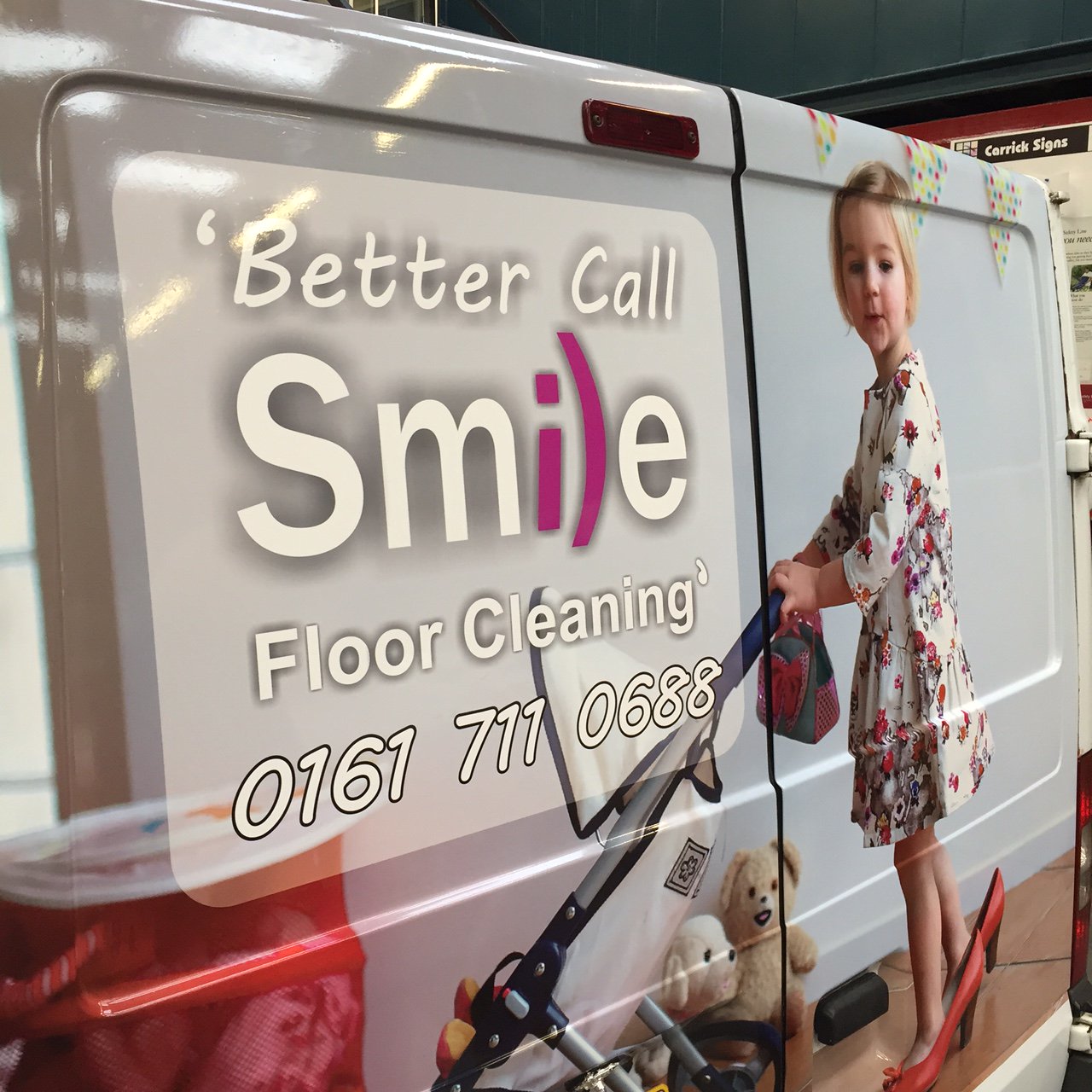Our latest vinyl wrap for Smile Carpet Cleaning is being finished up this afternoon and looking good. #smi)e #largeformatprint #cargraphics
