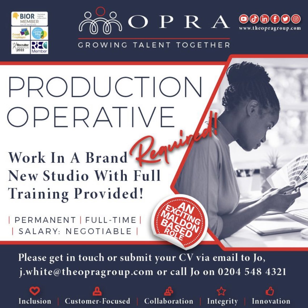 🗣 Work in a brand-new print studio in Maldon. Full training provided!