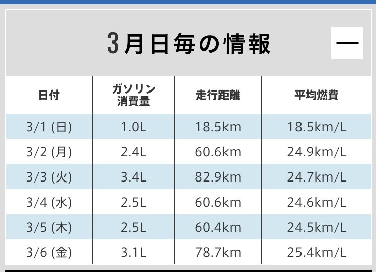 JO-ys @JO_y_smmr · Mar 6 FREED AIR EX e:HEV RS(GT5) 勝手に通勤燃費チャレンジ! 今週の燃費実績ですけど、 夏タイヤに換えて今日ようやく 25km/Lを超えましたねw 燃費の伸びにくい時期かなぁ🤔 来週もぼちぼちECO運転を 頑張っていきましょう💪 #FREED #フリード #eHEV #RVb 27 277