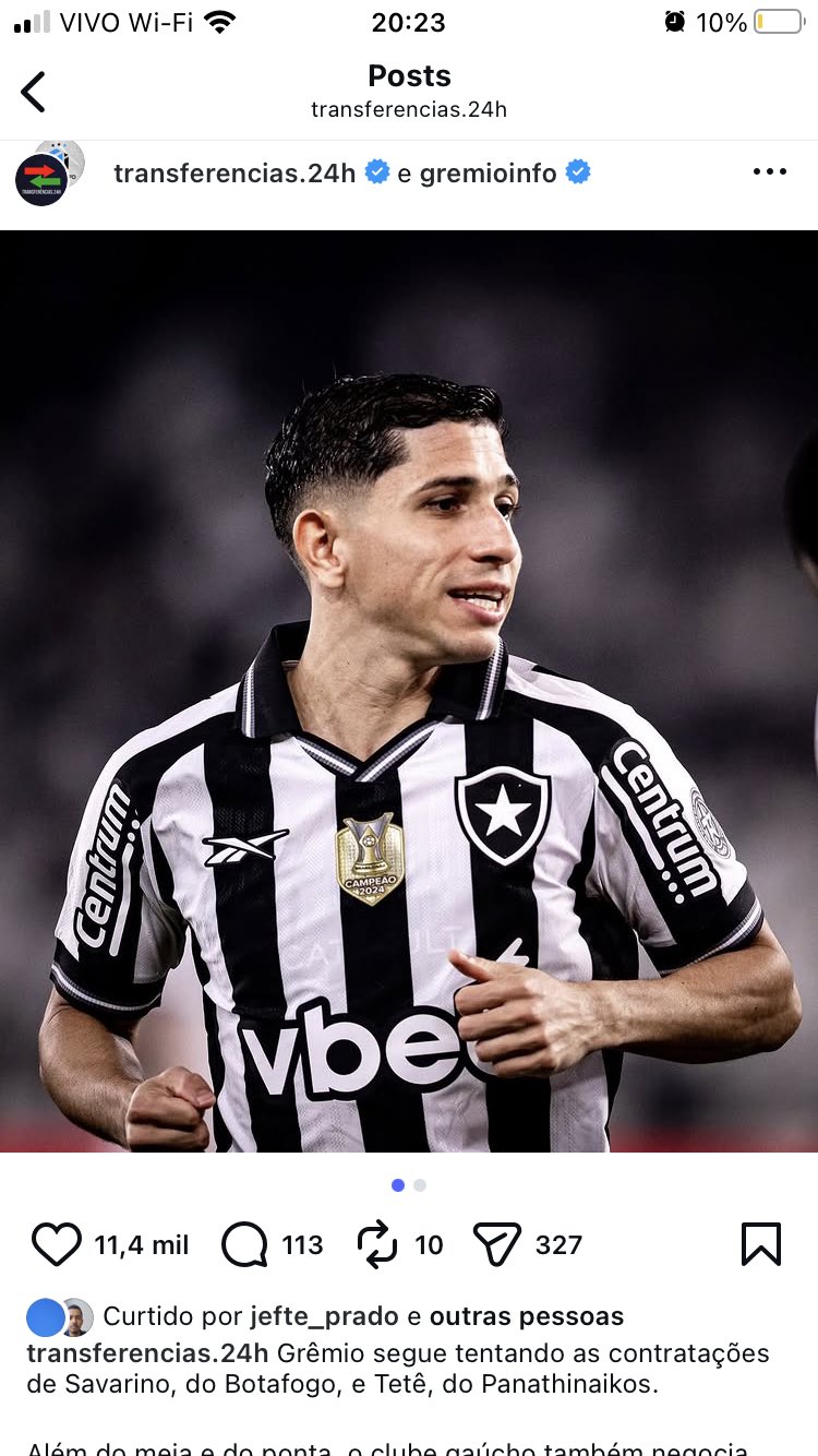 🚨🇪🇪 O Grêmio segue tentando as contratações de Savarino, do Botafogo e Tetê, do Panathinaikos, da Grécia.
