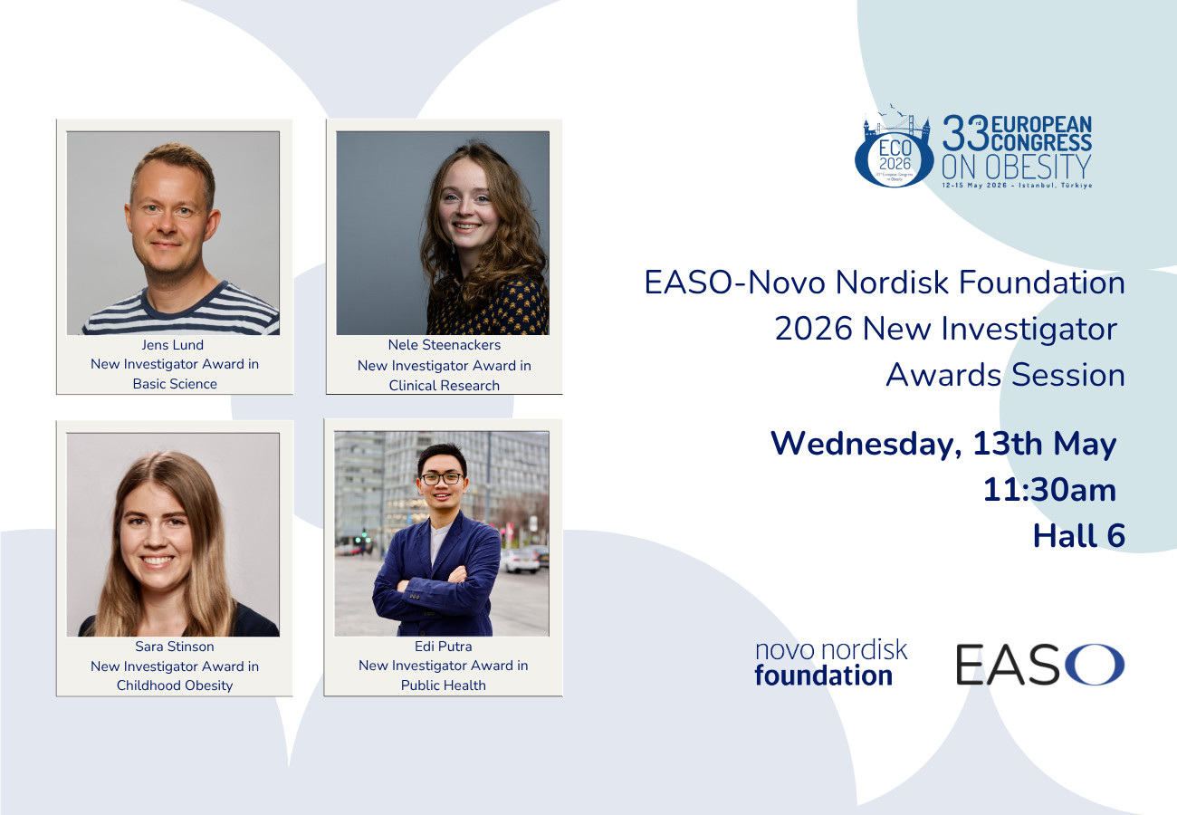 The 2026 EASO - @novonordiskfond New Investigator Award winners will present their research at #ECO2026 on Wed, 13th May at 11:30 in Istanbul, Türkiye 🇹🇷