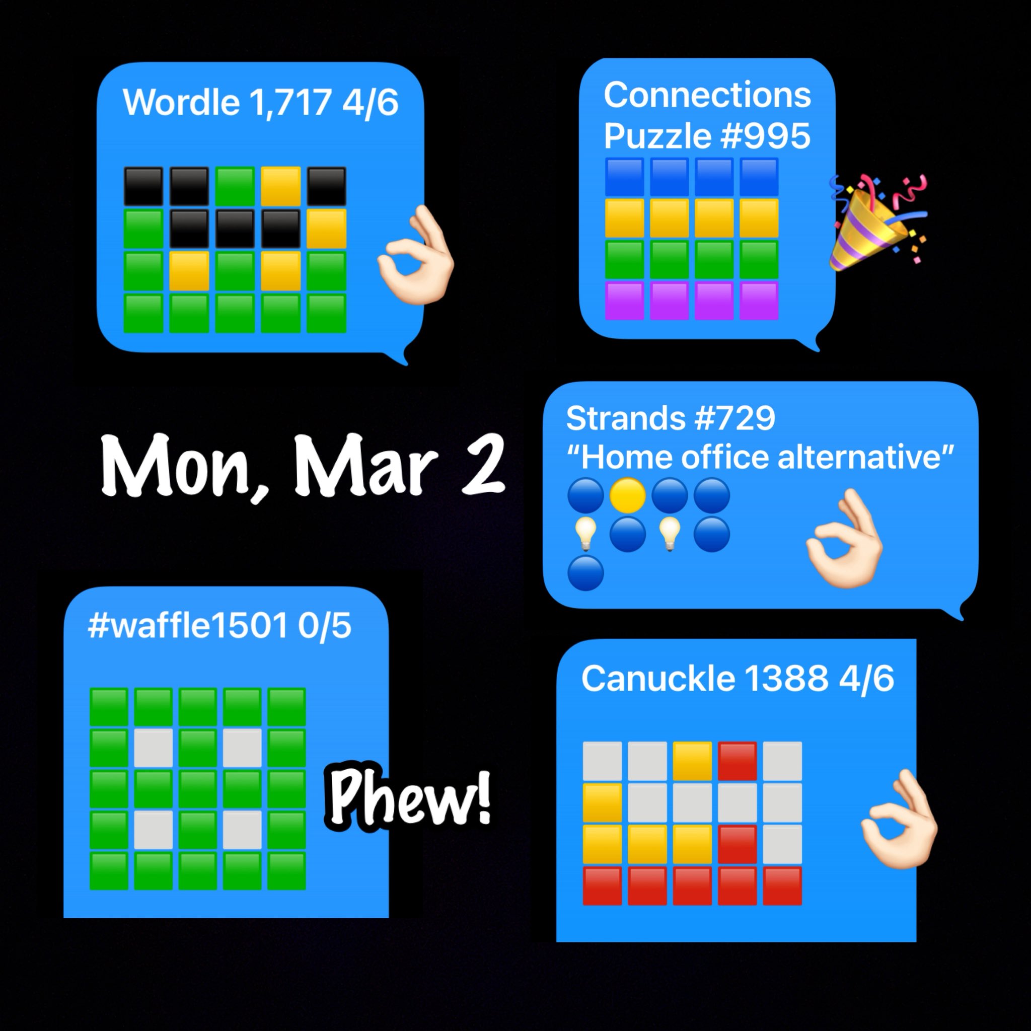 𝓩𝓲𝓹🐾𝓩𝓸ë🐾𝓜𝓸𝓶👩🏻🌾~✨🕯𝓛𝓾𝓷𝓪🐾✨~ @WhidbeyGypsy · Mar 2 Replying to @albers75 @albers75 @2HousePanthers @annielynnshea @WildflowersTale @hankster_the @jeanne31923250 @HeatherLane77 @flatcoatsx3 @BilsDeb @Violet_theNewfy Morning, Mandy #WordleFren 🧩💚 Yay, you👍🏻 Strands had weird words!! Edded hints!! Happy March, week & Monday #WordleFrens08fATx 2 3 20