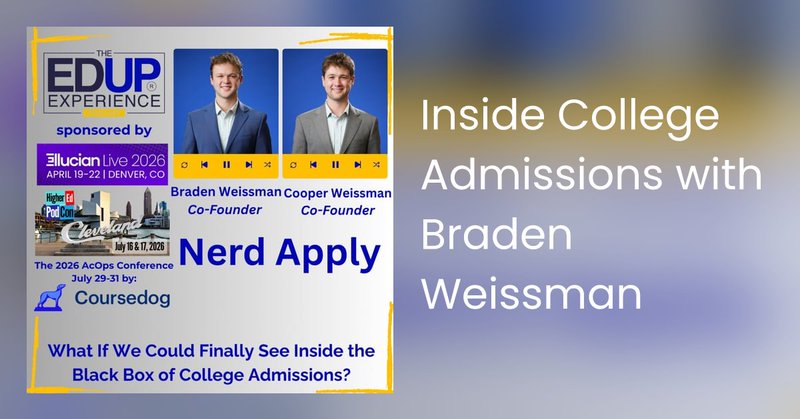 The EdUp Experience @EdUpExperience · 1d edupexperience.com/nerdapply/ Inside College Admissions with Braden Weissman Explore college admissions insights with Braden Weissman and Cooper Weissman, co-founders of Nerd Apply. From edupexperience.com 1 2 13