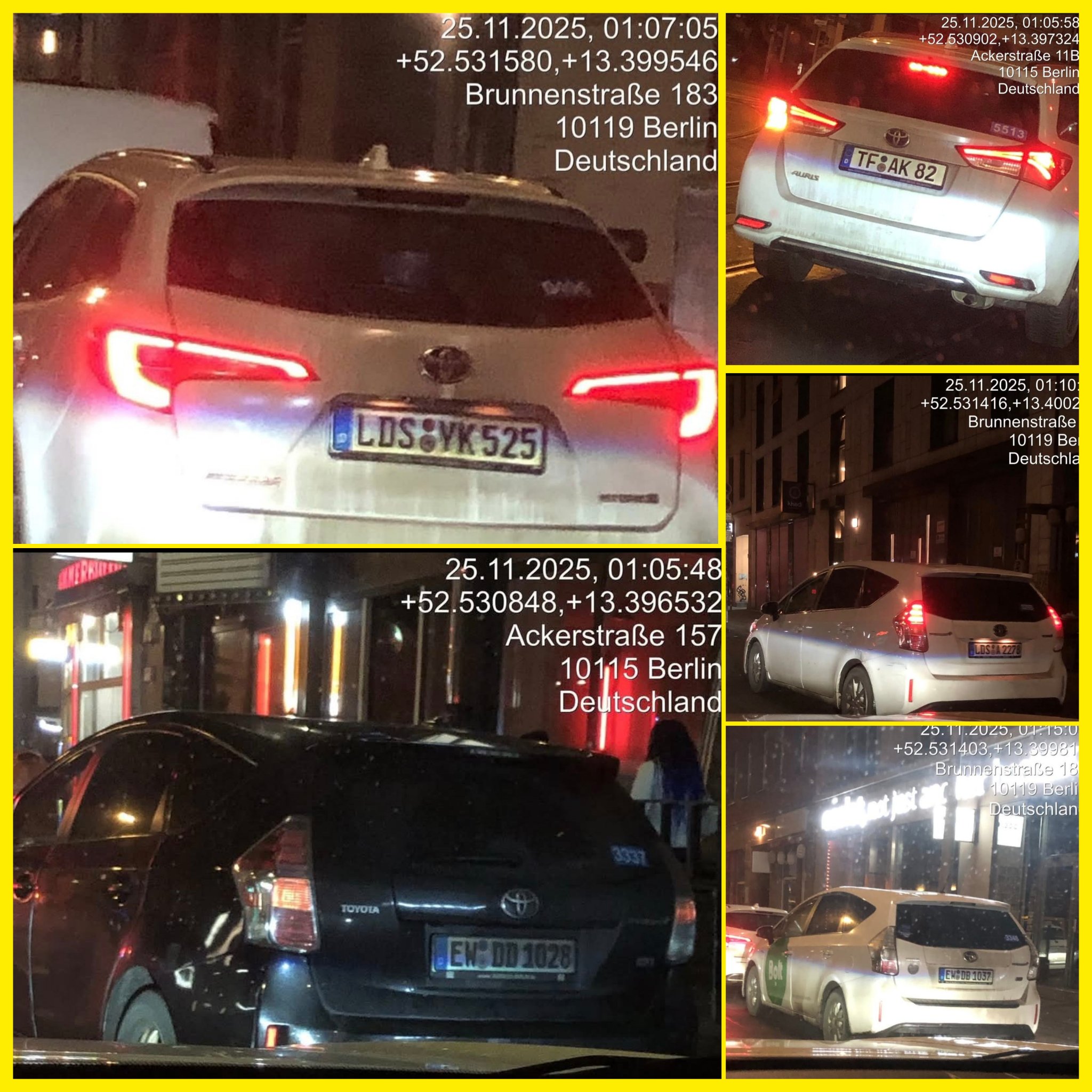 Mietwagen mit allen möglichen Brb'er Kennzeichen fahren hier umher, die berliner Behörden machtlos, statt neue Wege zu gehen u. die Mietwagenfahrer per App zu sich zu bestellen, somit wäre auch alles wasserdicht nachweisbar!