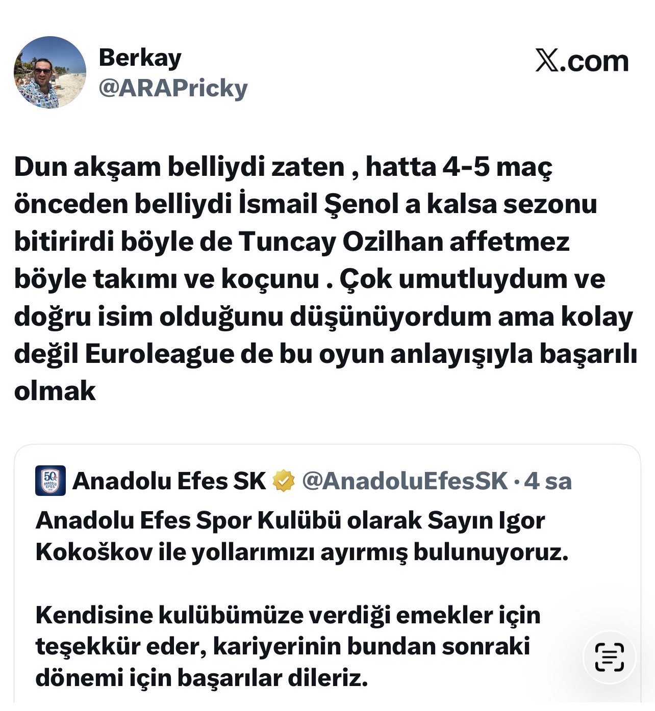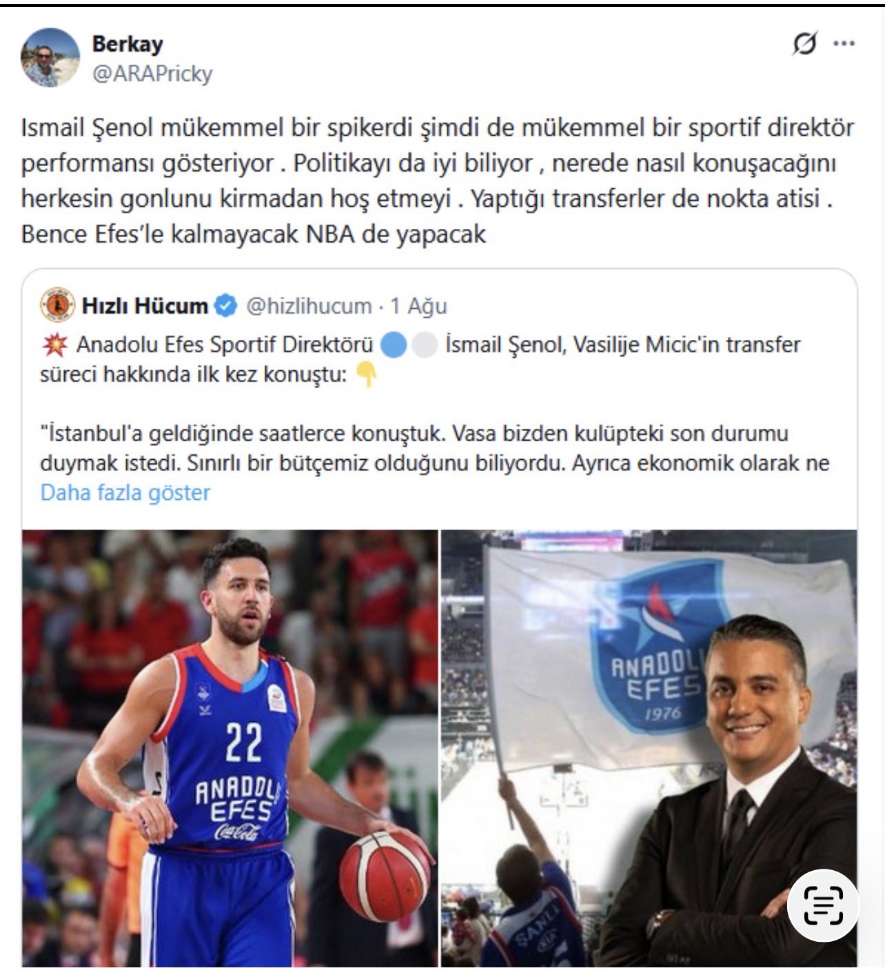 Yusuf Erboy: Anadolu Efes konsol oyununda oynar gibi takım kurdu.