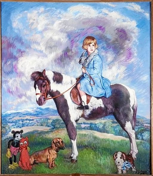 #Zuloaga a la pequeña Cayetana veréis que además de sus perros ha representado algunos de sus juguetes, y uno de ellos... ¡¡¡un muñeco de en 1930 y Mickey prácticamente acababa de nacer, pero ya empezaba a ser conocido en todo el mundo e incluso a hacerse merchandising. No era más que el principio, en cualquier caso, porque aquel ratón (del que se decía que tenía un carácter muy parecido al de Walt Disney) se convertiría en uno de los grandes iconos del siglo XX, una auténtica estrella global. Hay quien dice que parte del secreto de su éxito (aparte de su carácter afable, de que hacía reír...) es su diseño gráfico, uno de los más atractivos que se han creado nunca (los tres círculos de la cabeza y las orejas son un icono reconocido en cualquier parte del mundo).