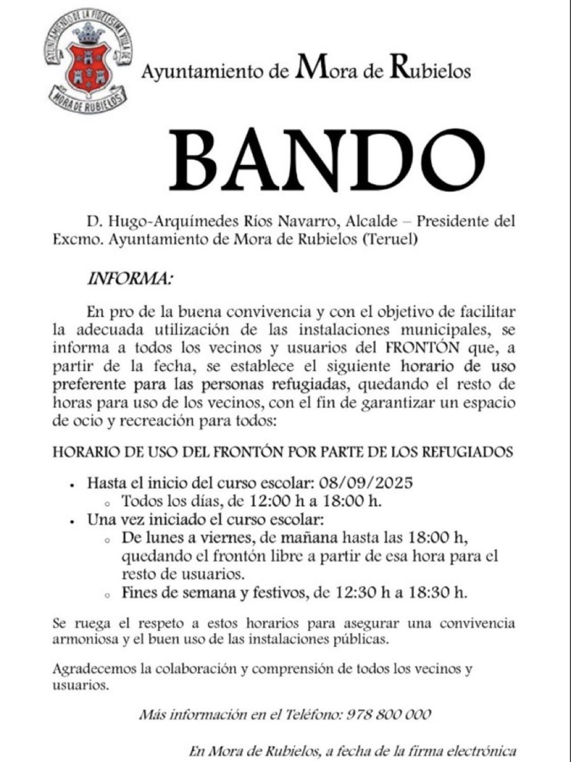 #PAR, que gobierna en Mora de Rubielos, Teruel, ha decidido que el frontón pagado con los impuestos de los turolenses es prácticamente para uso y disfrute exclusivo de los inmigrantes.