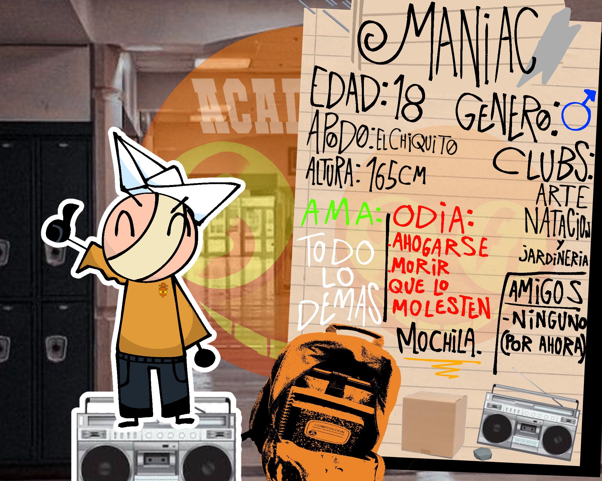@S_ANTAG0N1STAS -MANIAC- le gusta la musica a veces... Romper reglas... ¡Pero es cuidadoso! Y le gusta su barquito de papel. #SupremosAntagonistas#Acade