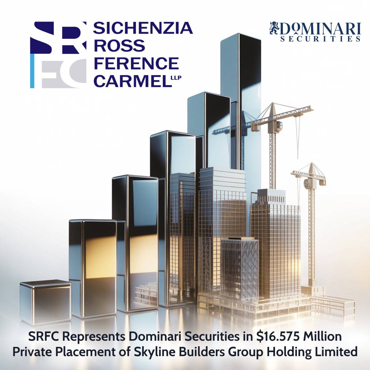 @SichenziaRoss announced that it represented Dominari Securities LLC as the placement agent for the recently priced $16.575 million private placement of convertible notes of Skyline Builders Group Holding Limited (@Nasdaq: $SKBL).