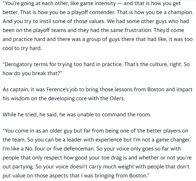 I remember this interview with Andrew Ference from his time during the Edmonton rebuild, and the importance of not just having vets, but having vets whose game the young players respect. So I can understand why the #Canucks organization values Filip Hronek so highly.