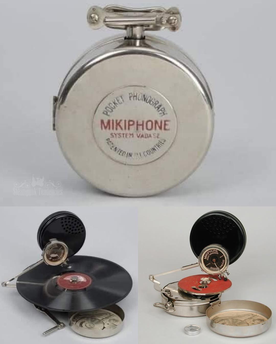 1924 Mikiphone portable pocket gramophone from Switzerland. Hungarian designer Miklós Vadász created this battery-free wonder in the 1920s so folks could spin records anywhere. Fold it up, tuck it in your pocket, and jam on the go with just a hand crank. #Vintage