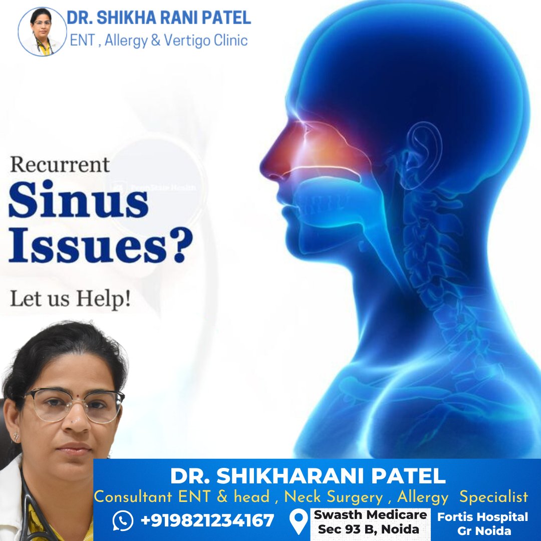 Did you know #recurrentsinusissues can be #managed effectively? Take control of your #health – book an #appointment for expert guidance and a customized #treatment plan. Dr Shikha Rani Patel ENT doctor in Noida g.co/kgs/YXUqC4s #War2 #niftycrash #VenomTheLastDance