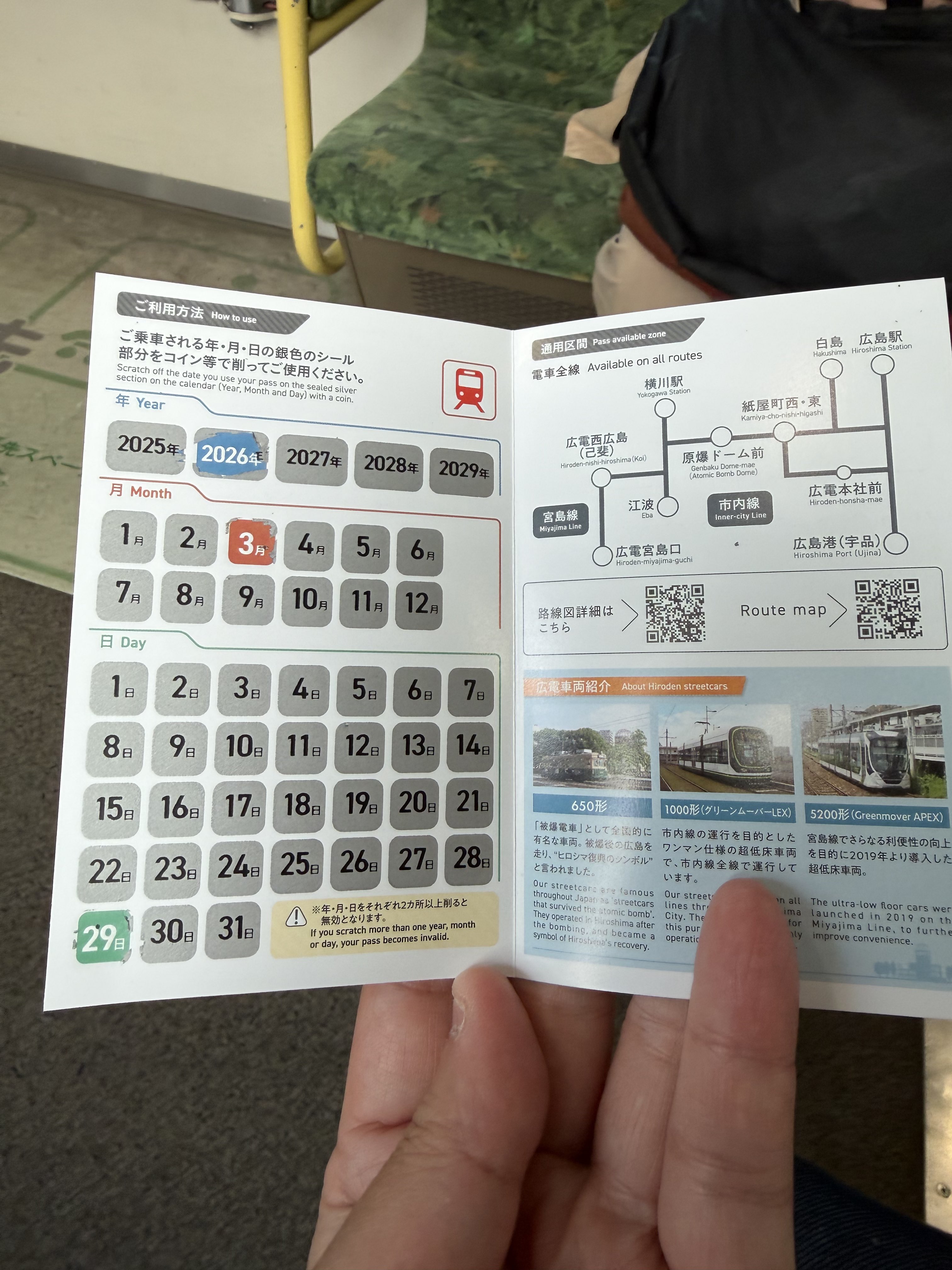 From jp.mercari.com広島電鉄の車内で、情弱が過ぎて車掌さん乗務を把握しておらずm(_ _)m、信号待ちの余裕があるときではありますが運転士さんにお願いして電車一日乗車券700円を購入してスクラッチ。
