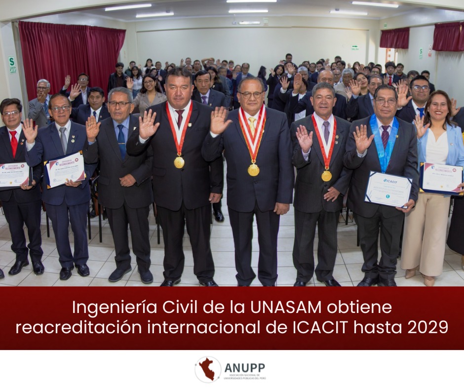 La Universidad Nacional Santiago Antúnez de Mayolo logró la reacreditación internacional del programa de Ingeniería Civil por parte de ICACIT, con vigencia hasta el 31 de diciembre de 2029, reafirmando el cumplimiento de estándares internacionales de calidad académica.