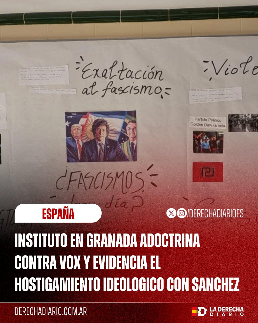 🚨🇪🇸 | ADOCTRINAMIENTO CONTRA VOX: Un IES de Armilla, en Granada, intenta adoctrinar a los alumnos con un mural que criminaliza a VOX y a sus aliados internacionales en la precampaña de las elecciones andaluzas. Se ha instalado en zonas comunes del institutPbL