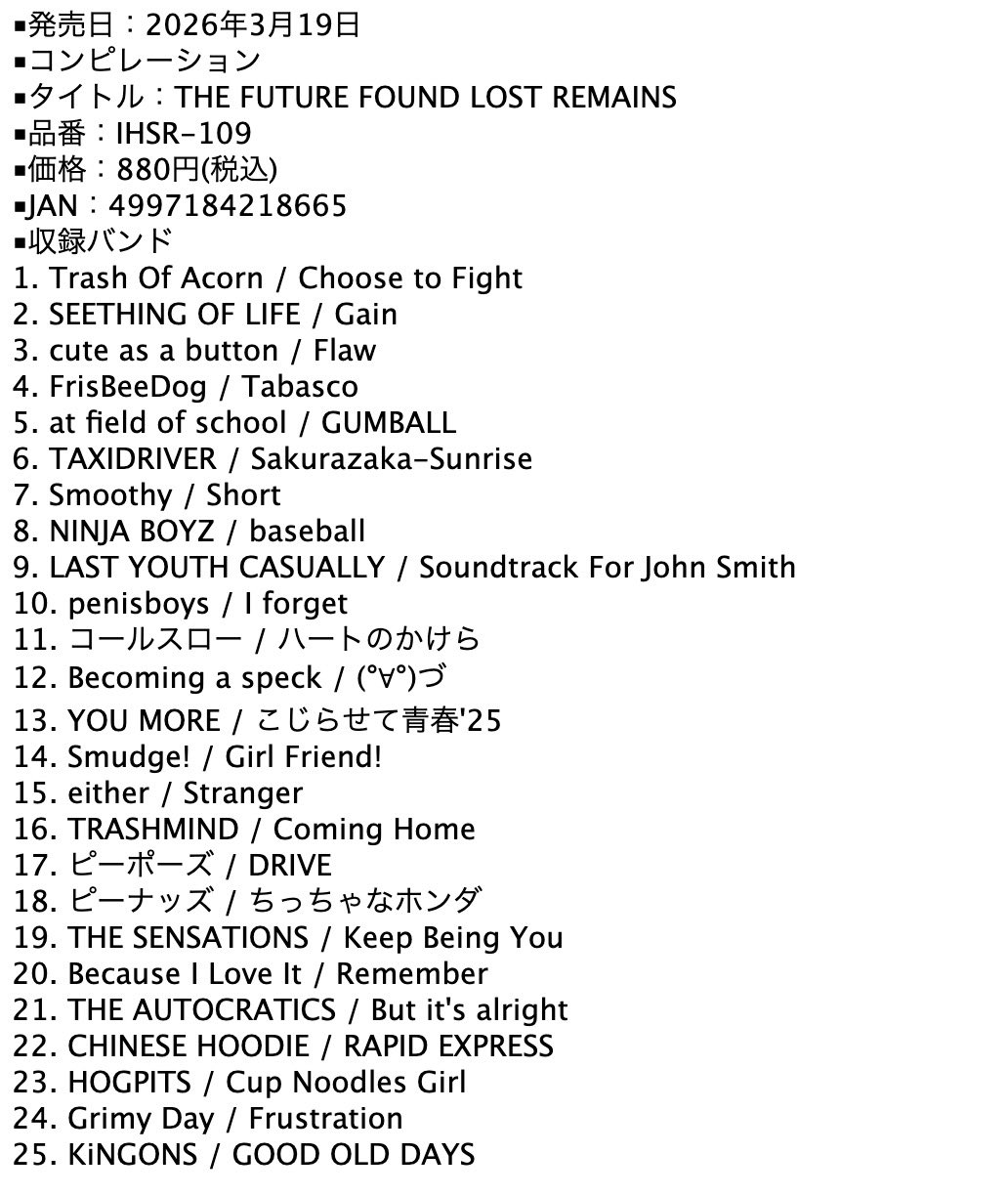 ・本日発売!25バンド収録コンピ『THE FUTURE FOUND LOST REMAINS』解説!