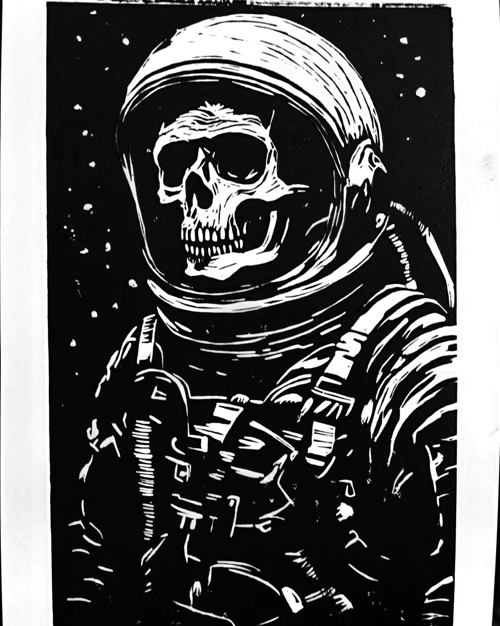 Gonzalo Sánchez - Gonn Illustration @cibersan77 · May 18, 2024 #dead #space #spaceman #death #astronaut #linocut #blockprint #blockprinting #illustration #drawing #Ink 1 87