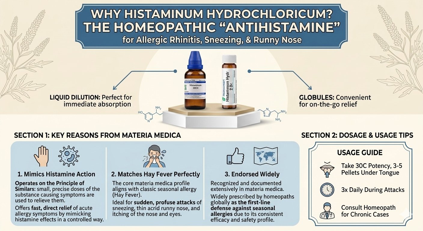 Struggling with allergic rhinitis? Histaminum hydrochloricum acts as a natural antihistamine, easing sneezing, runny nose & itchy eyes. Check materia medica insights and comparison with another remedy for this condition here wp.me/p6CQsw-FB5