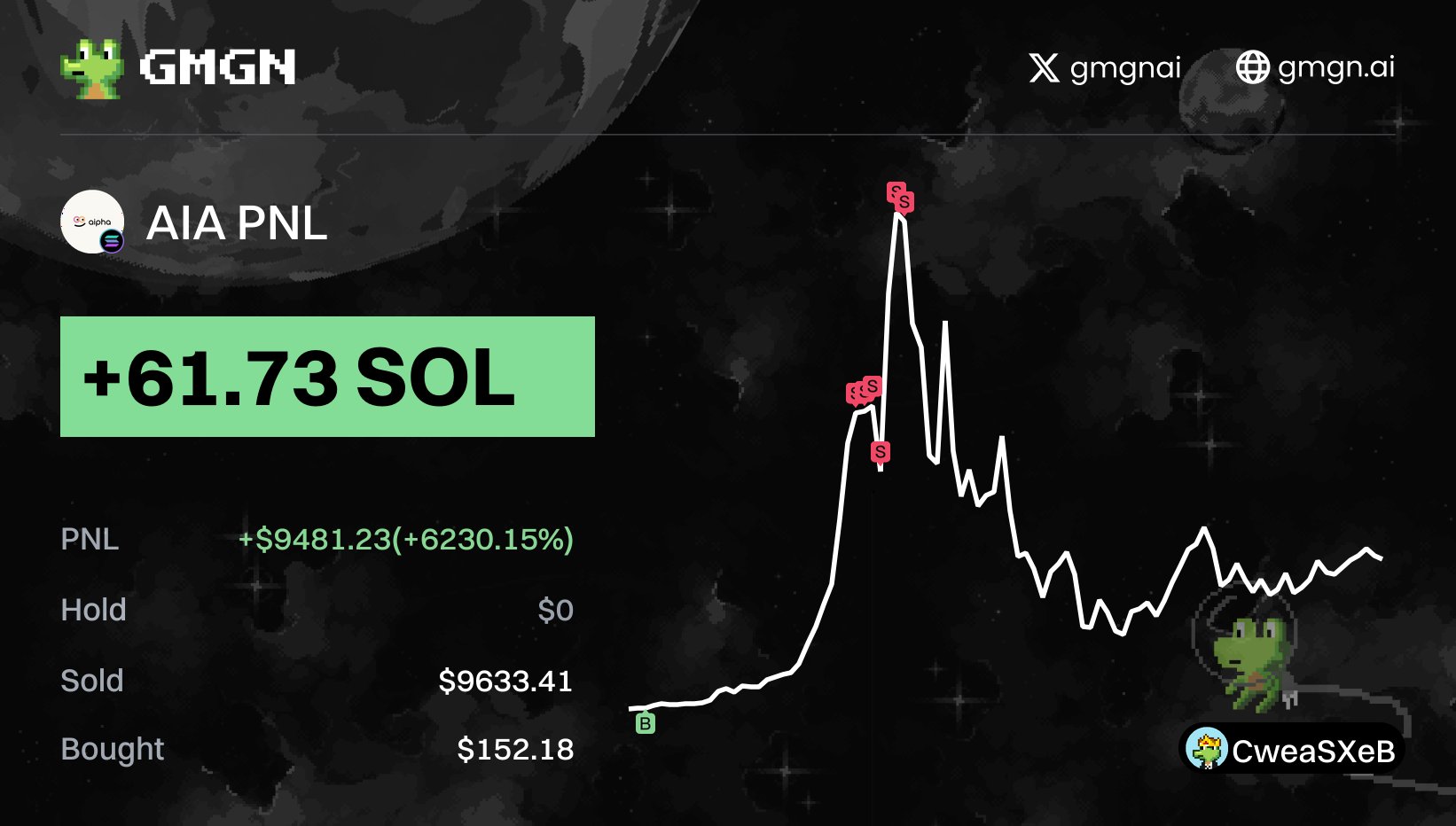 From $152 to $9481, a huge profit of +6230.2% was obtained, which is ZV1ht3uLZyT4YKqK4nT5cwPZjXaWCeLmttpump