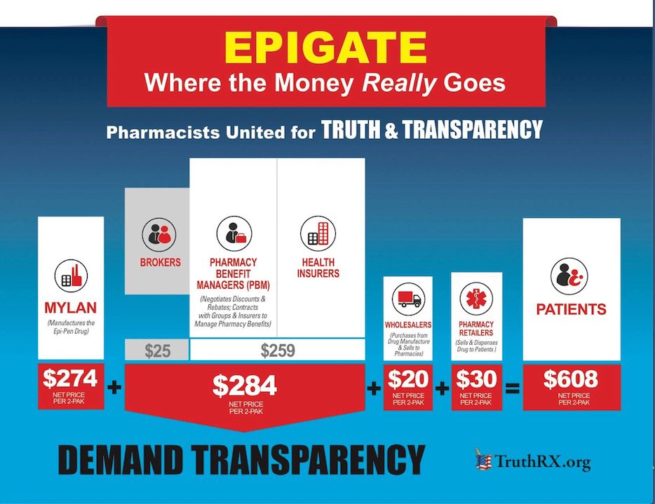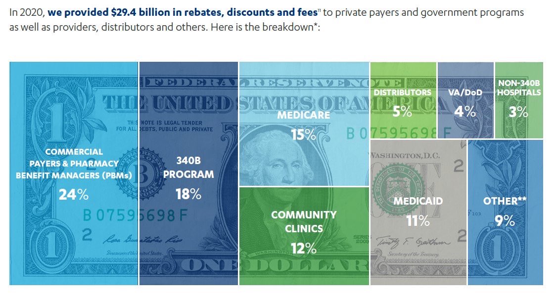 A quarter of Pharma rebates go to PBMs. Same PBMs owned by CVSHealth, UnitedHealth, and Cigna. Because of rebates a $274 drug becomes a $608 drug for the consumer.