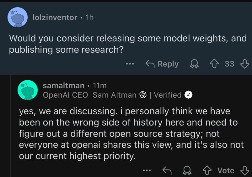 Sam Altman admet qu'OpenAI est "du mauvais côté de l'histoire" concernant l'open source, mais ça reste "pas une priorité". Pendant ce temps, DeepSeek et d'autres partagent leurs modèles. L'avenir de l'IA sera-t-il vraiment ouvert? 🤔 #IA #OpenSourpatb.ca/r/mu0MQ